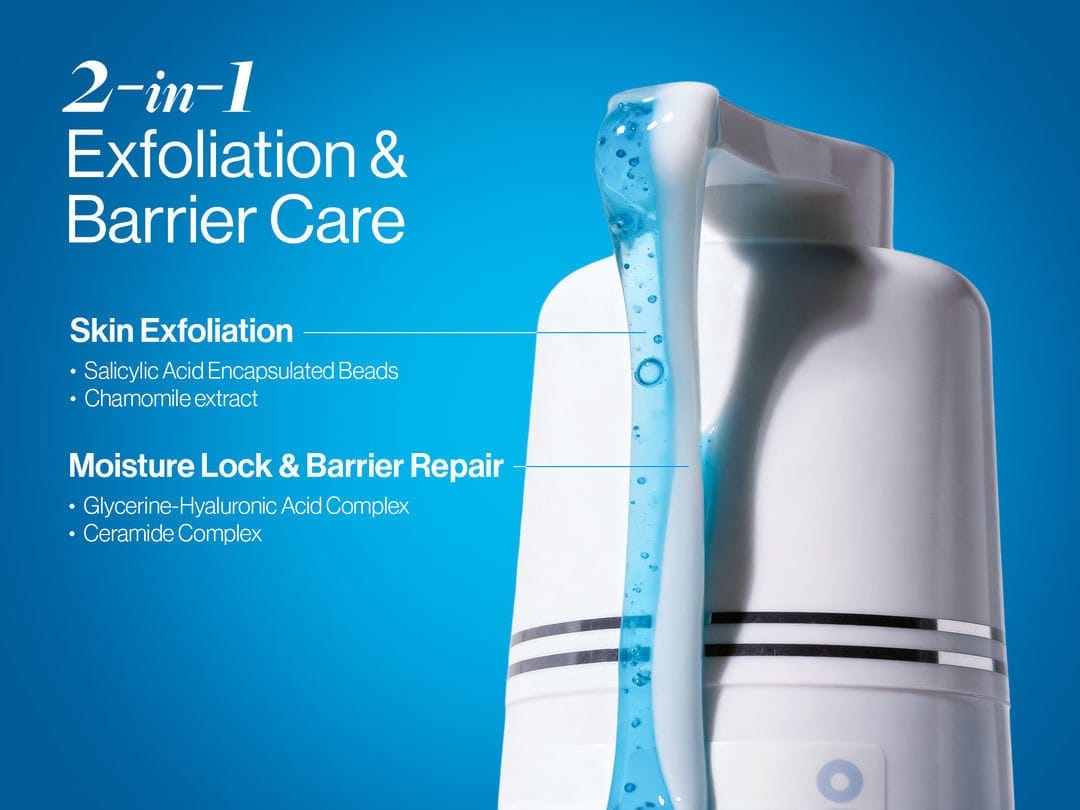 The 1% Salicylic Ceramide Body Wash features an innovative dual-chamber pump system: