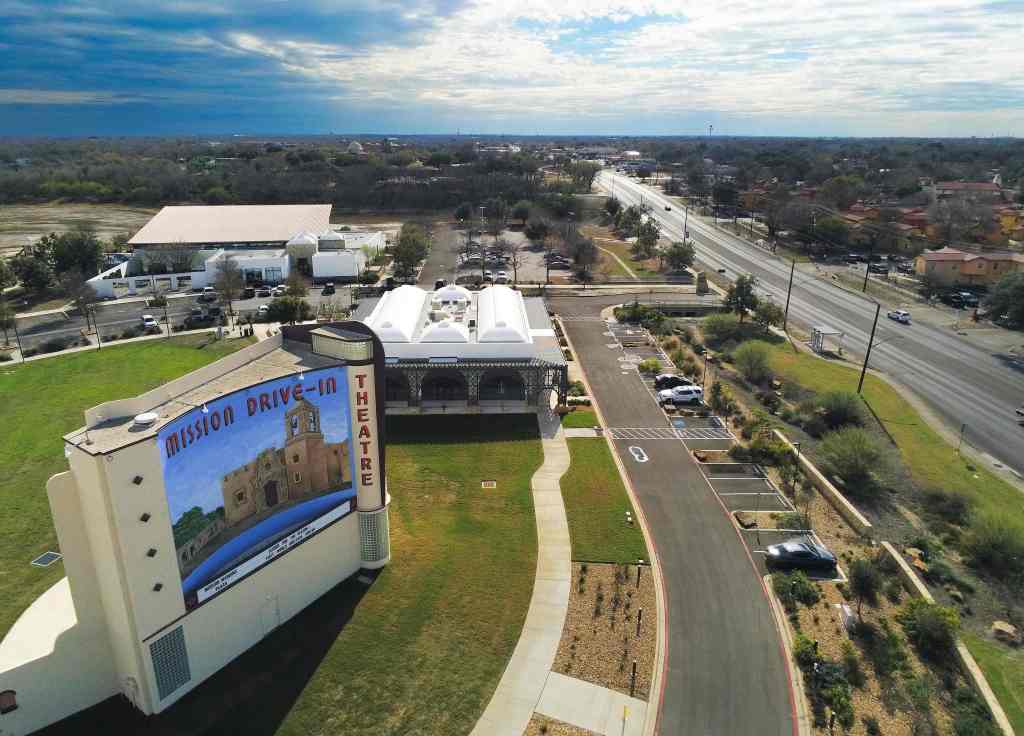 The Mission Drive-In Theatre and the adjacent public library are familiar sights in South San Antonio. Credit: Billy Calzada for Public Health Watch